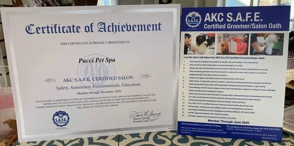 Pucci Pet Spa is proud to announce we are an AKC SAFE Certified