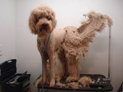 In some cases where the matting is not severe and only covers a small area, we can remove them by splitting, thinning and then brushing them out. There is a fee of $70 per hour to de-mat your pet. Matted coats are hard on our equipment and in most cases require two haircuts, the first to remove the matted coat prior to bathing and a second to even up the coat after bathing.